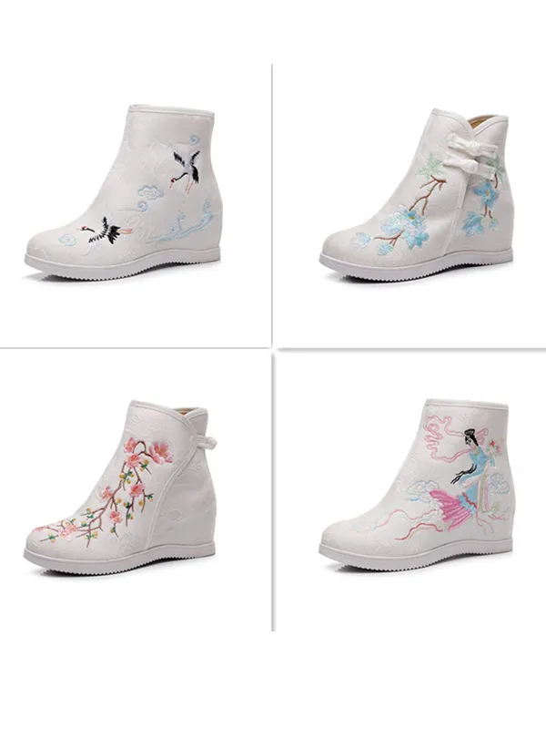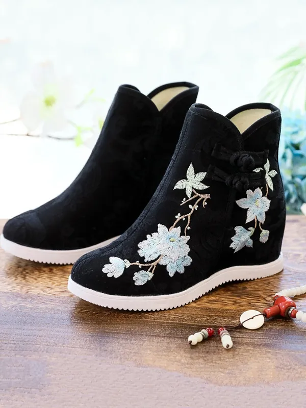 - Hand-embroidered Hanfu Boots – Thick-soled Platform Style