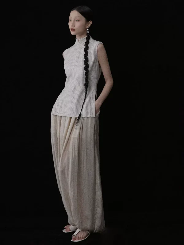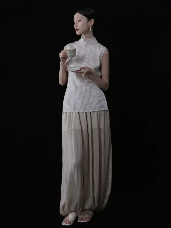 This modern reinterpreted qipao top is sleek yet stylish, crafted from a breathable cotton-linen blend. Soft against the skin, it offers exceptional comfort for everyday wear.