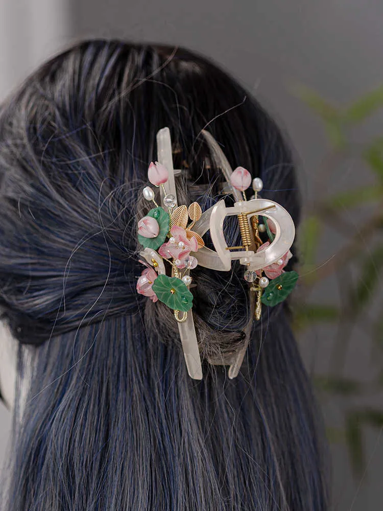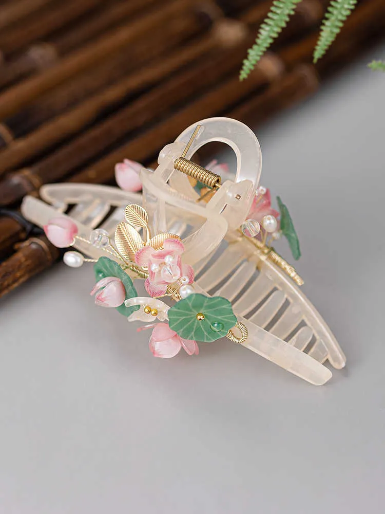 - A must-have for Hanfu outfits: stylish, elegant lotus shark claw hair clip.