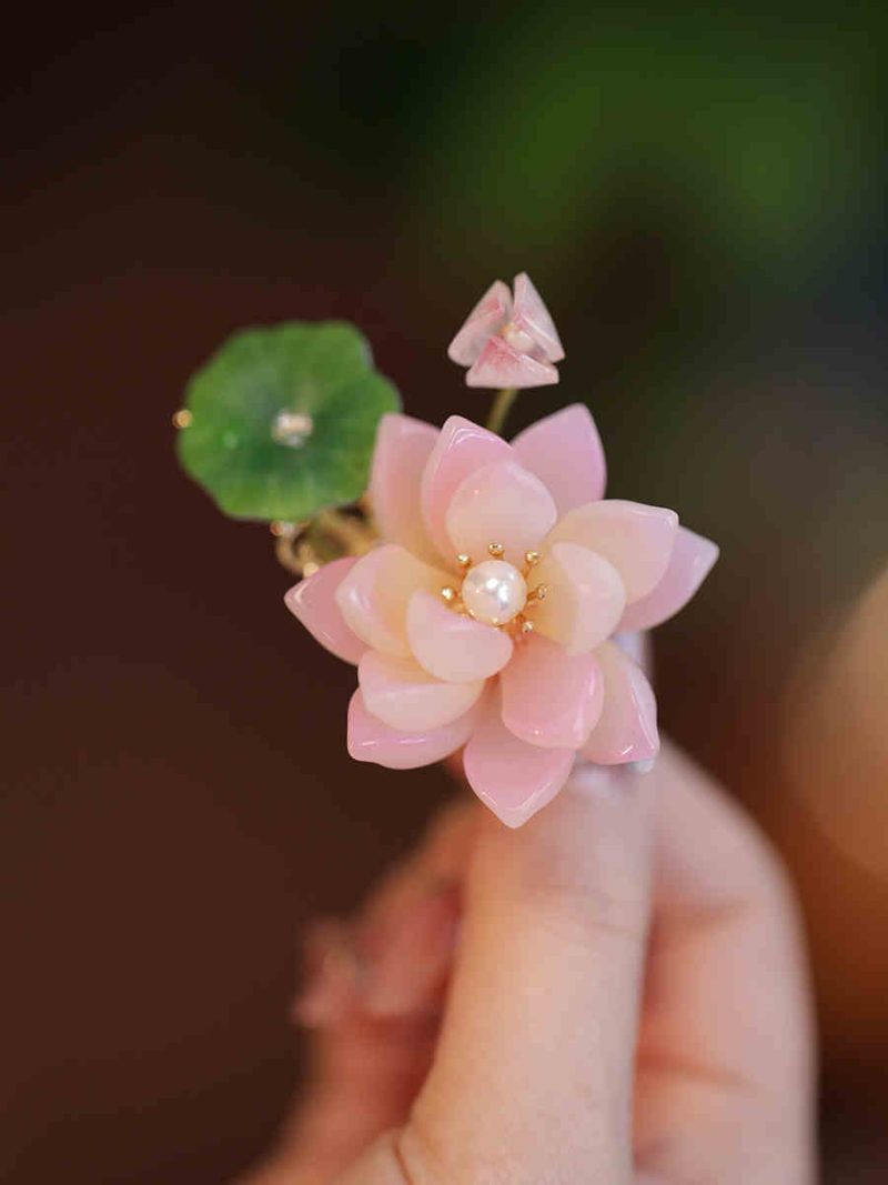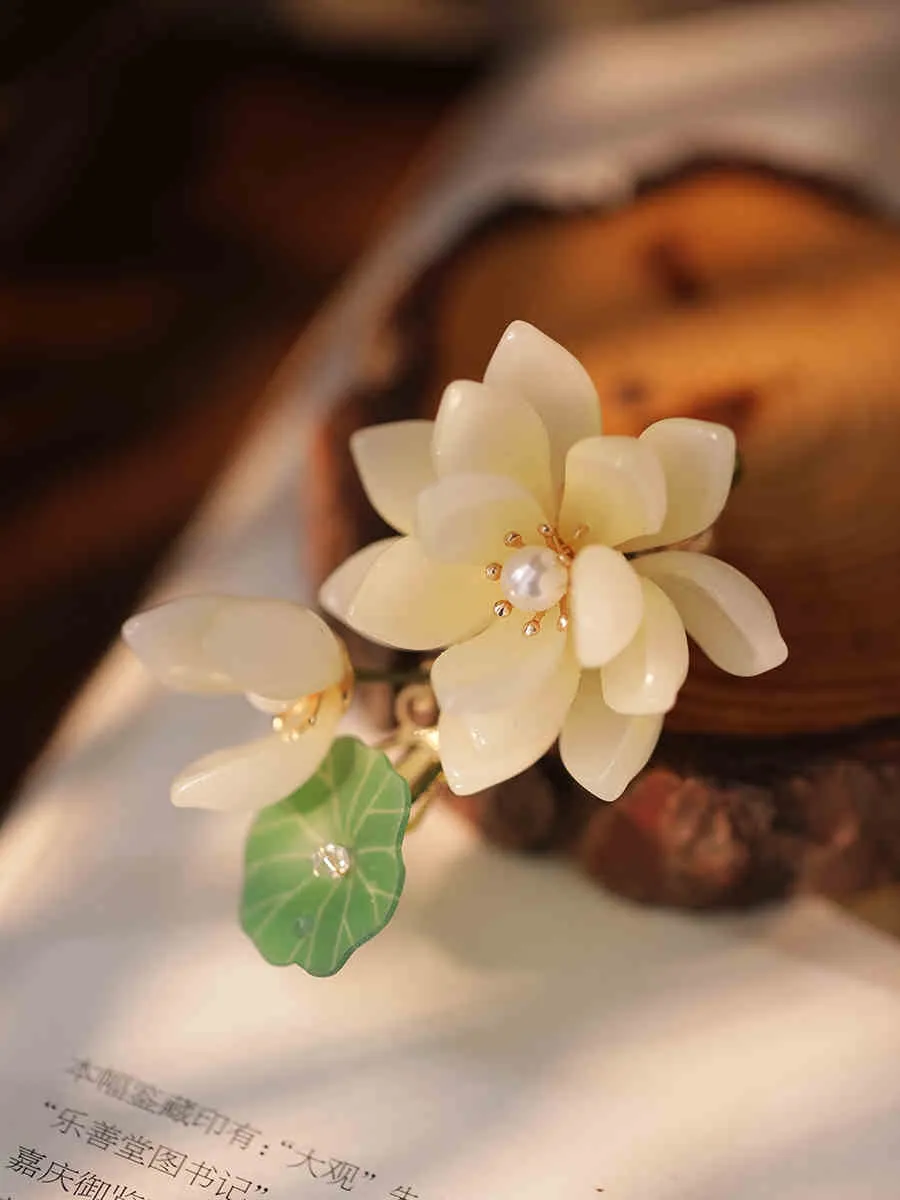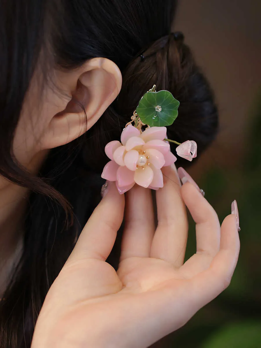 This Chinese-style lotus hair clip is an exquisite accessory designed for Hanfu and traditional Chinese fashion enthusiasts. Inspired by a budding lotus flower, it faithfully recreates the delicate petal patterns and fresh, graceful form. Featuring a spring-loaded clamp mechanism, it adapts to various hairstyles—from short hair worn to the side, to long hair partially tied up, to adorning a bun—with a secure grip that won’t pull hair.