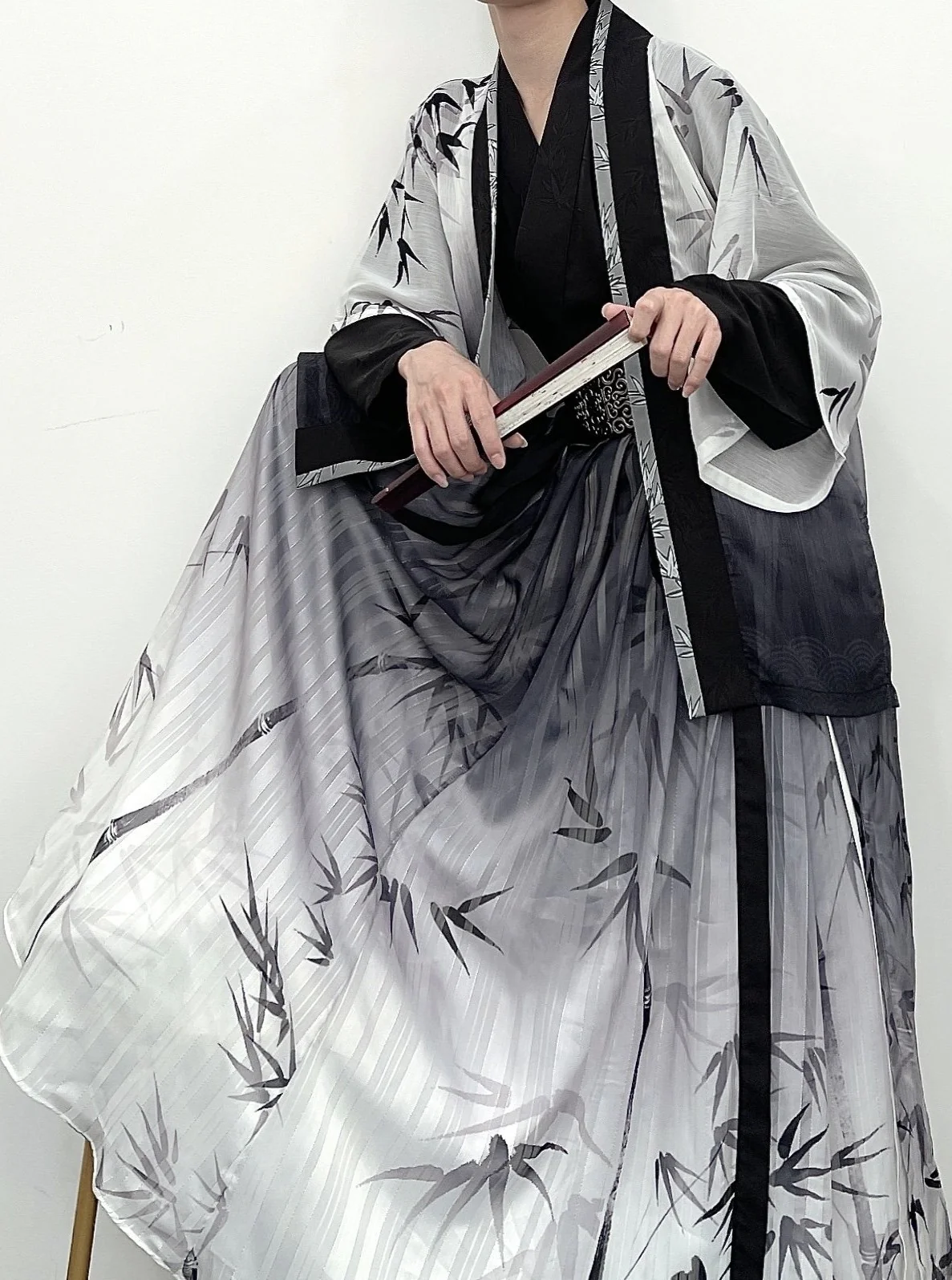 Pattern Design: Bamboo motifs adorn the garments (printed/embroidered with intricate details), symbolizing resilience and purity in Chinese culture—distinguishing it from plain-colored Hanfu.