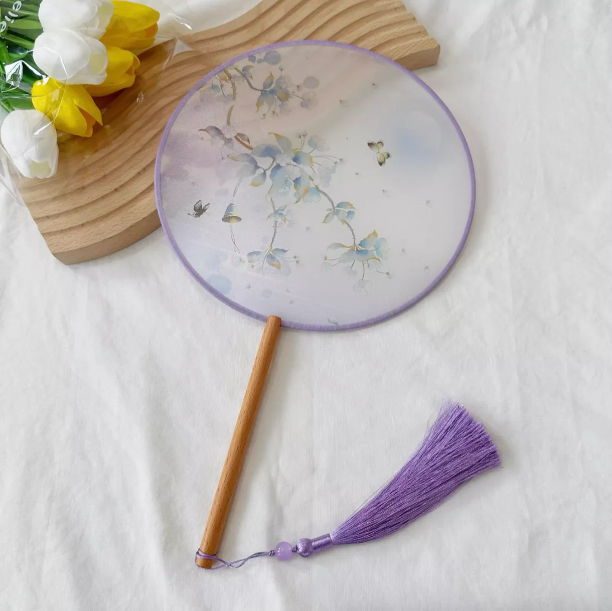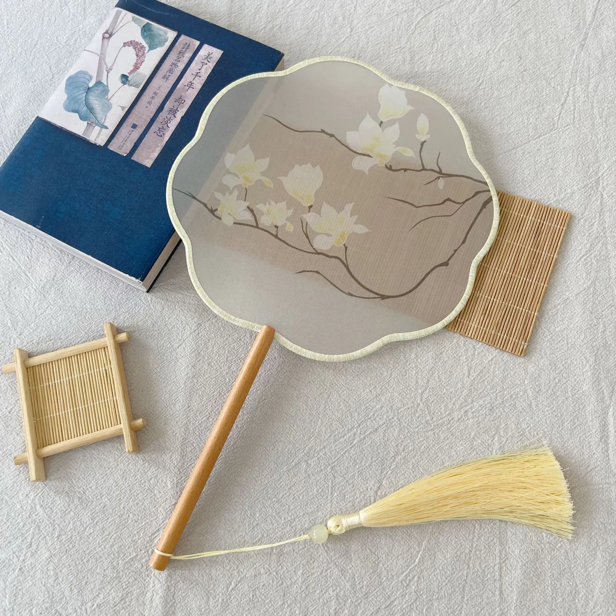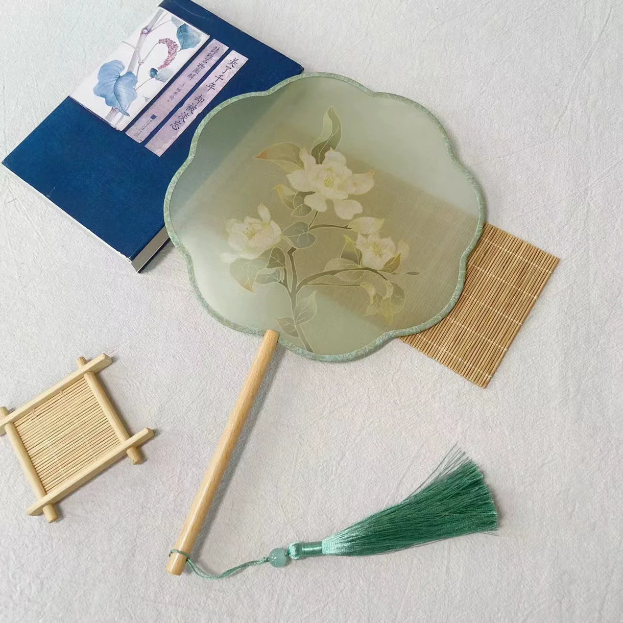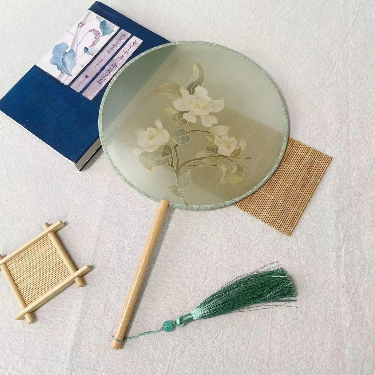 Shanzi 扇子 Translucent Silk Floral Print Tuanshan Round Fan