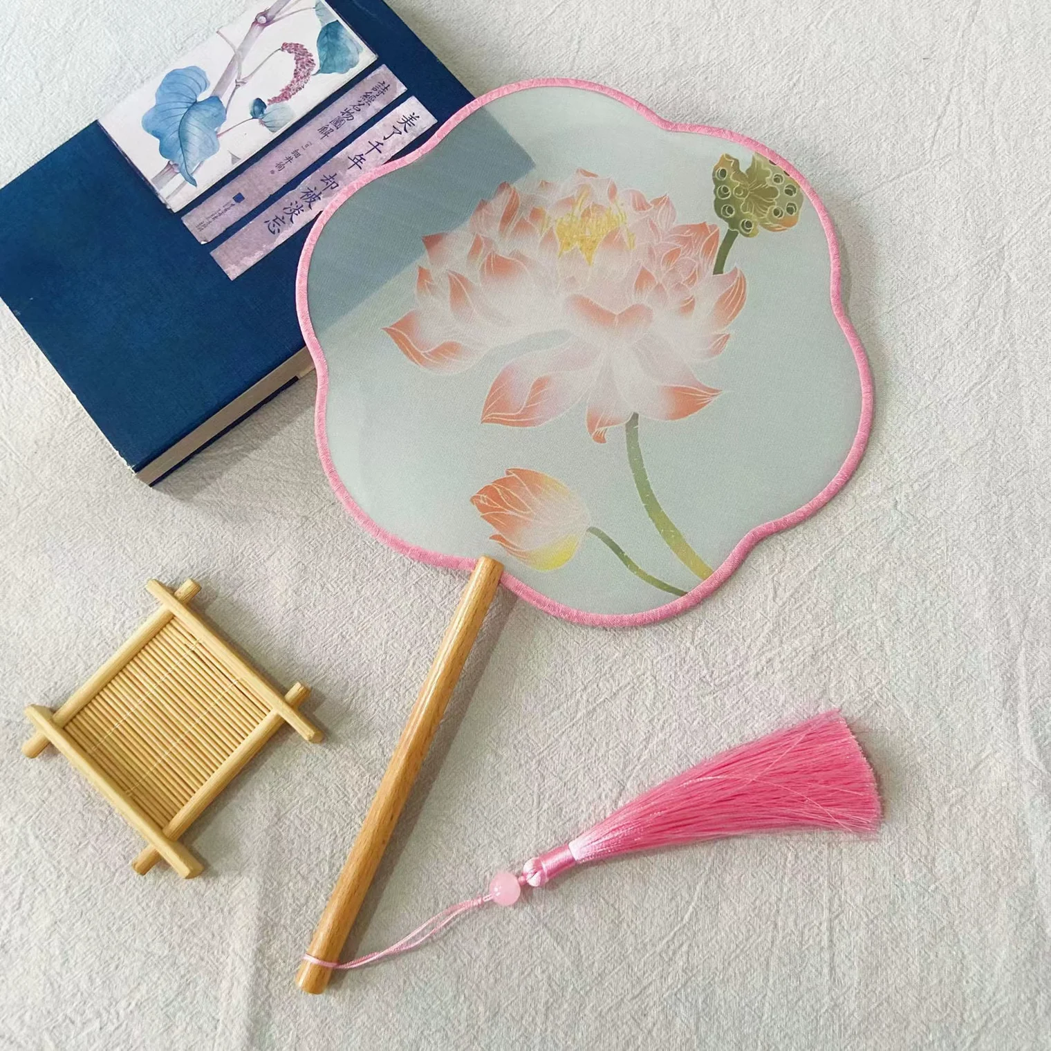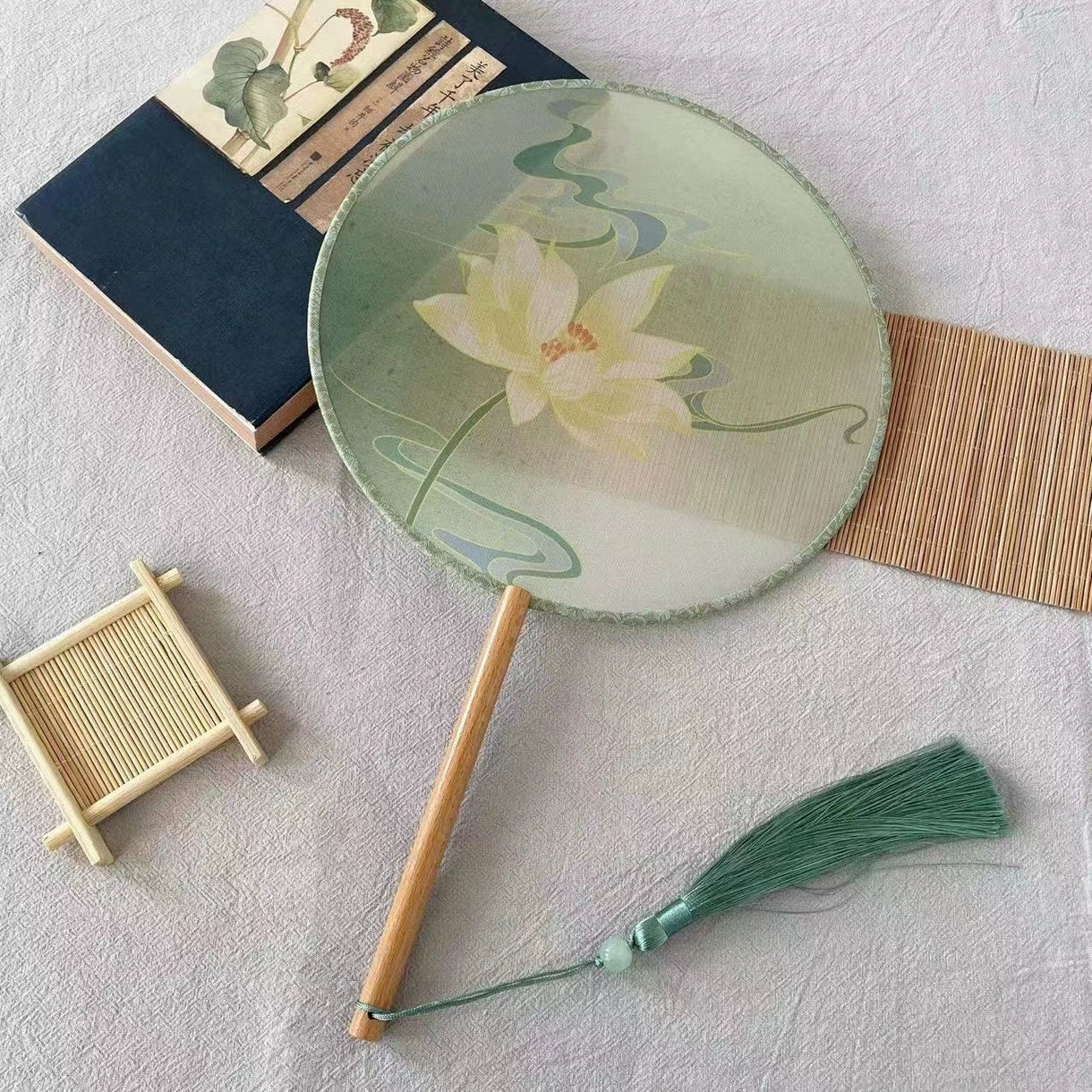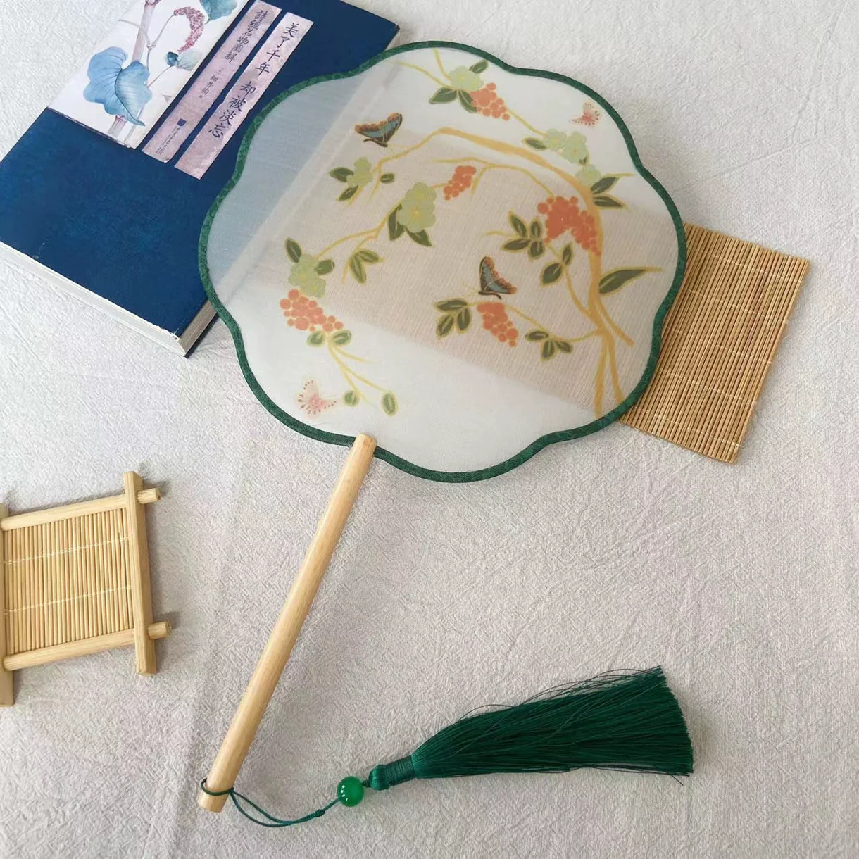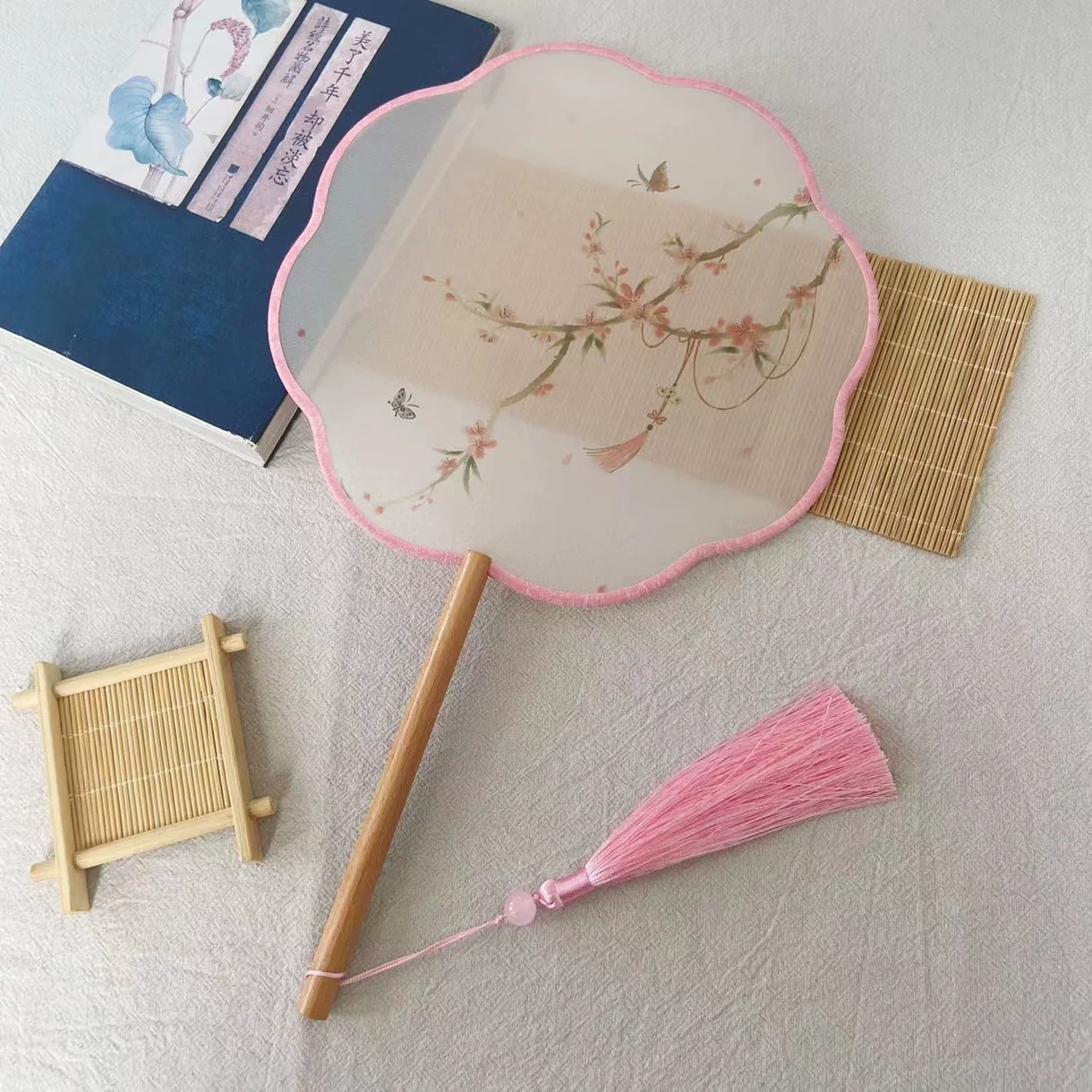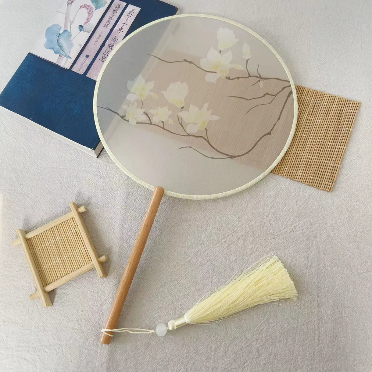 Shanzi 扇子 Translucent Silk Floral Print Tuanshan Round Fan