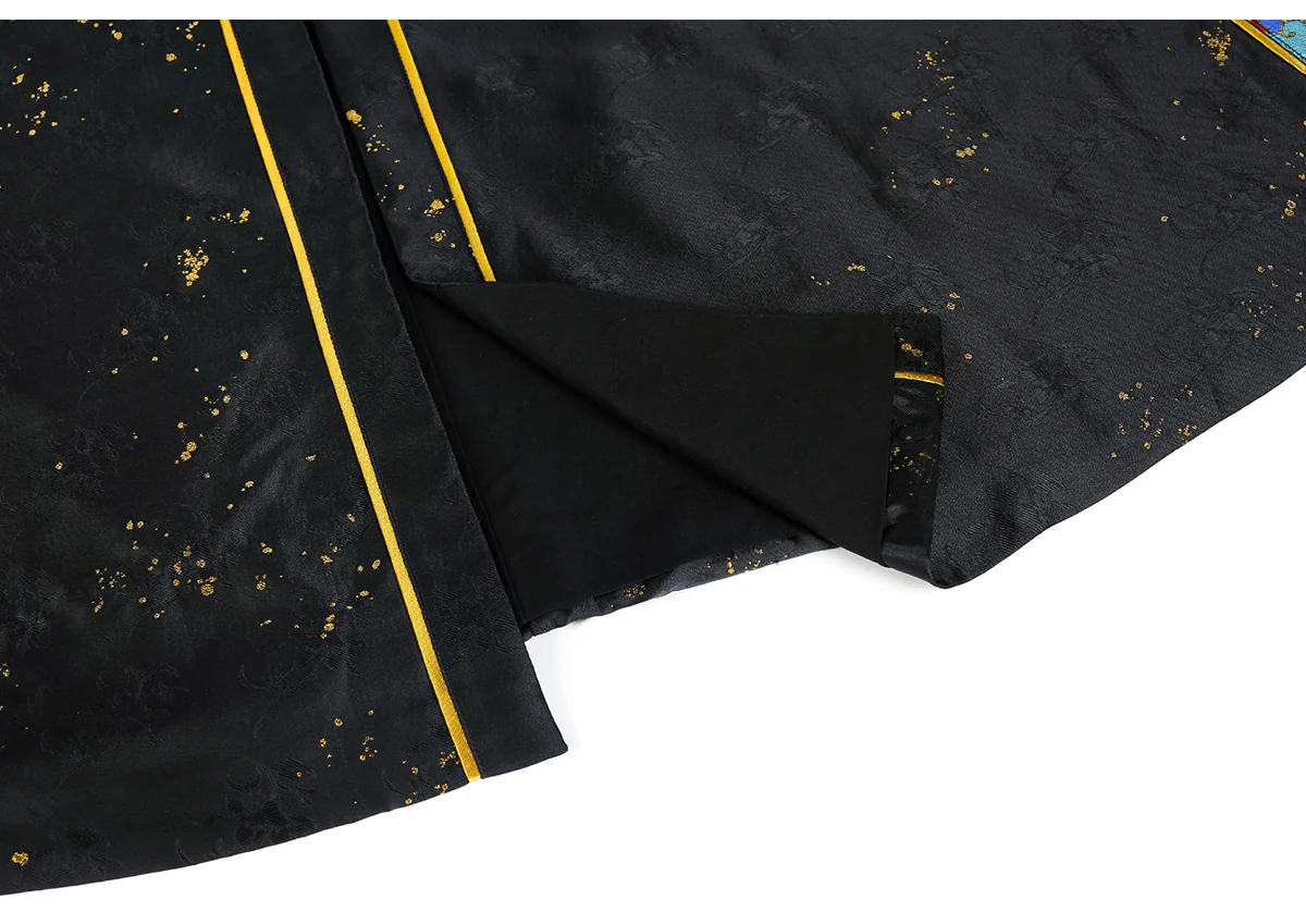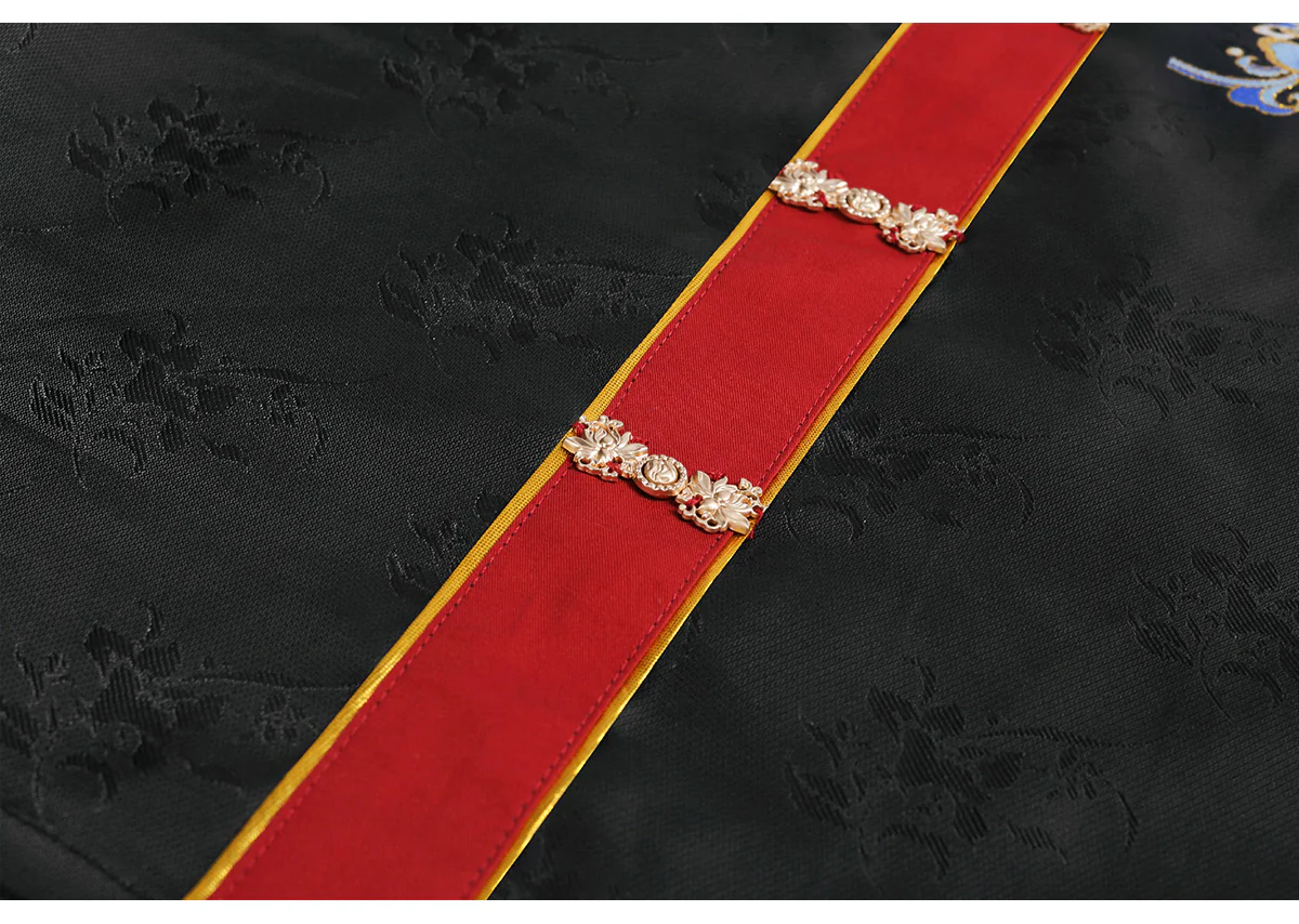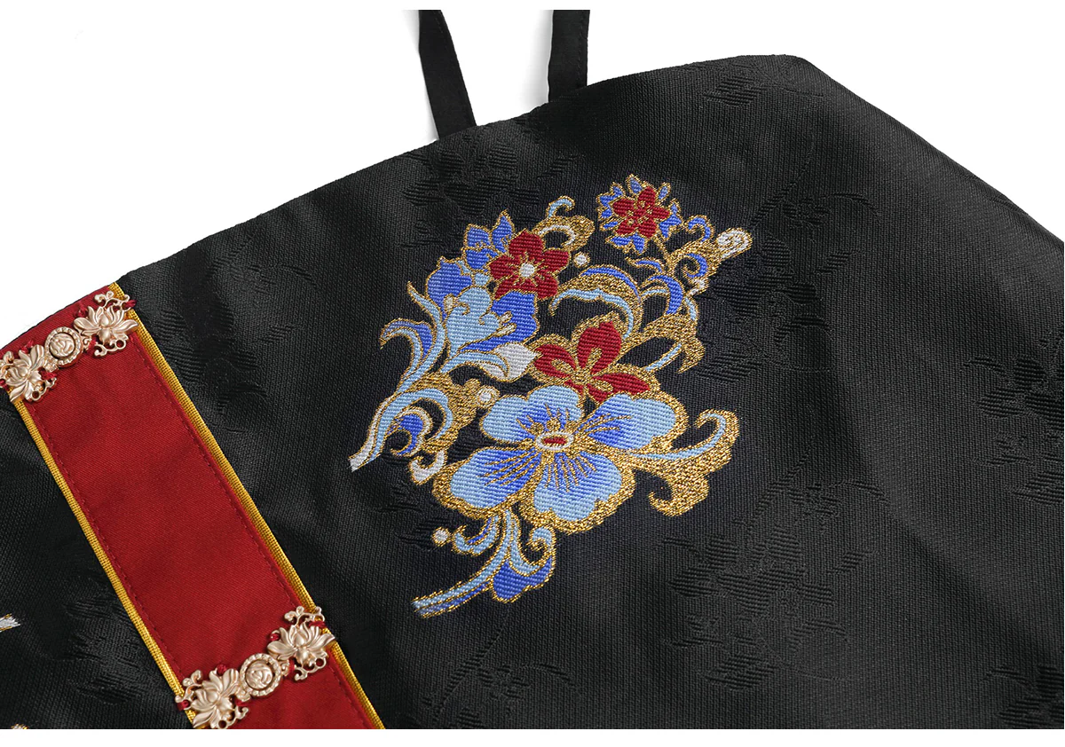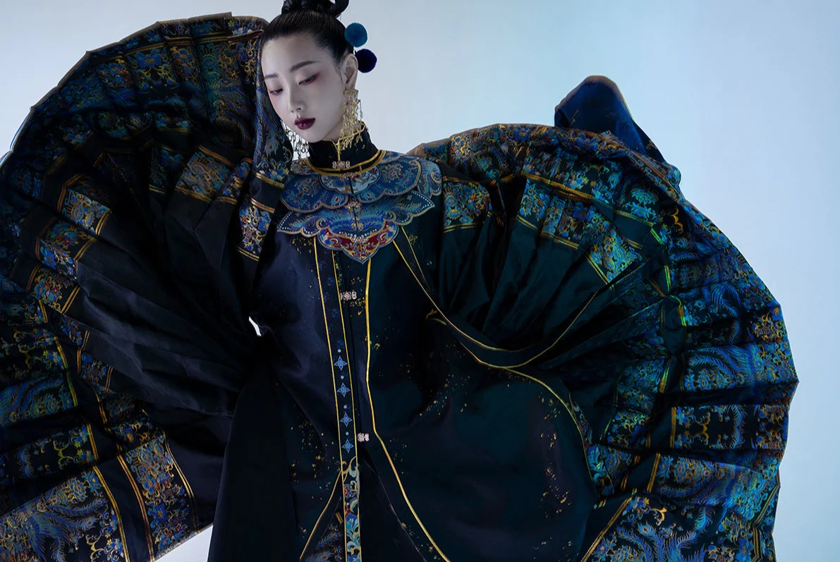 Pattern Design: Entire collection adorned with “Dancing Fairy” themed sequin embroidery (featuring floral and ribbon motifs). Vibrant yet understated colors paired with a navy blue base enhance texture, balancing traditional Chinese aesthetics with modern fashion;