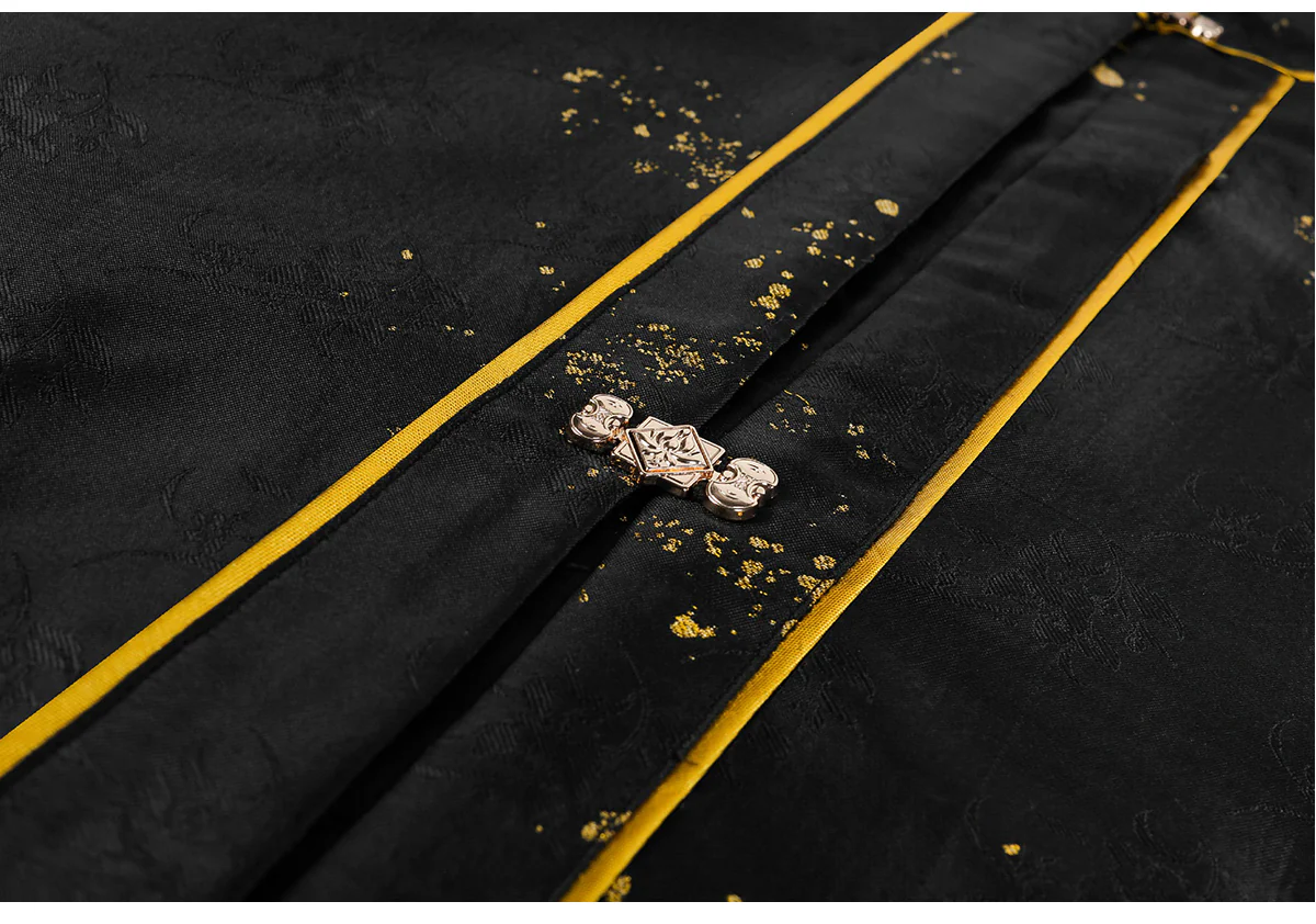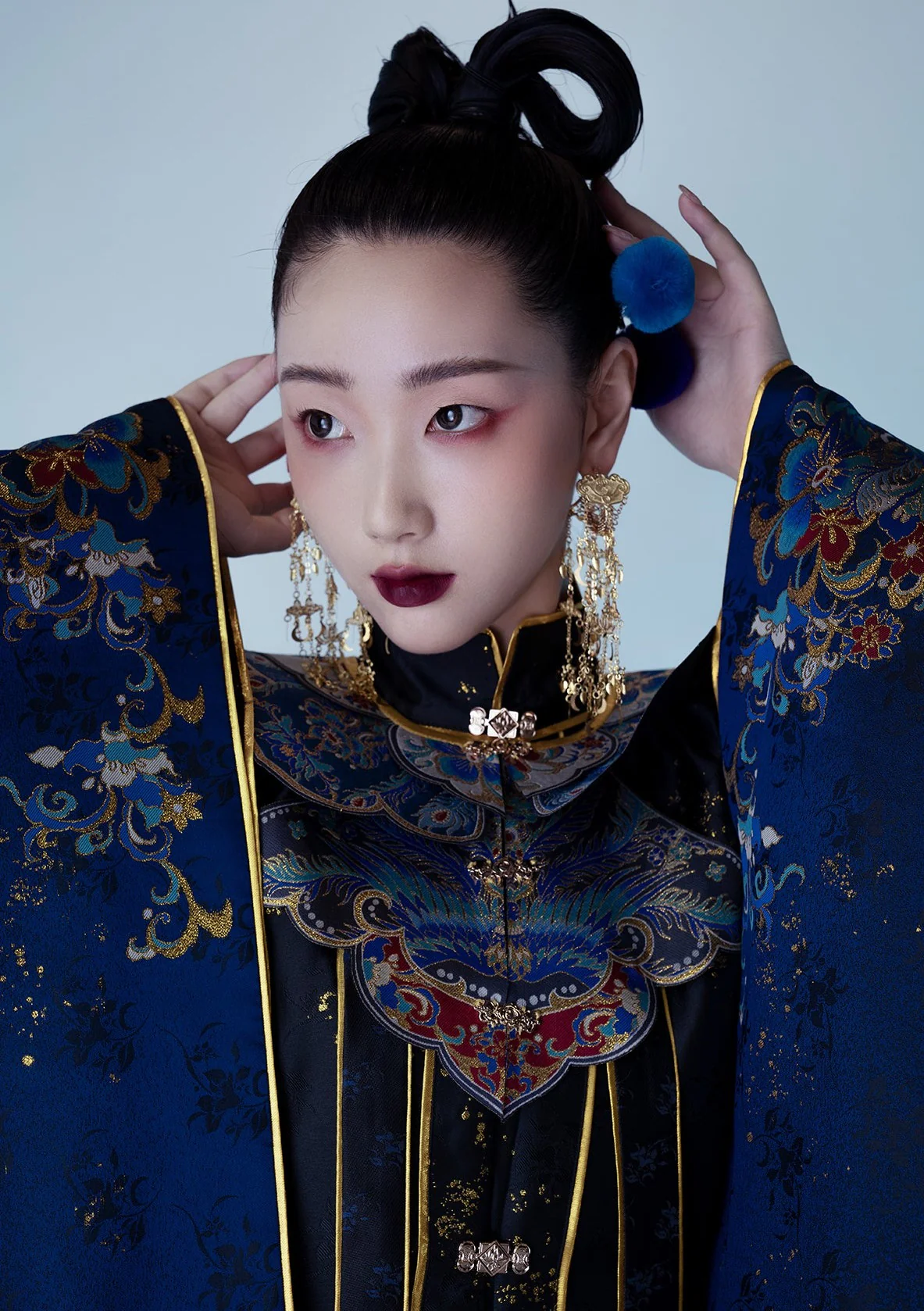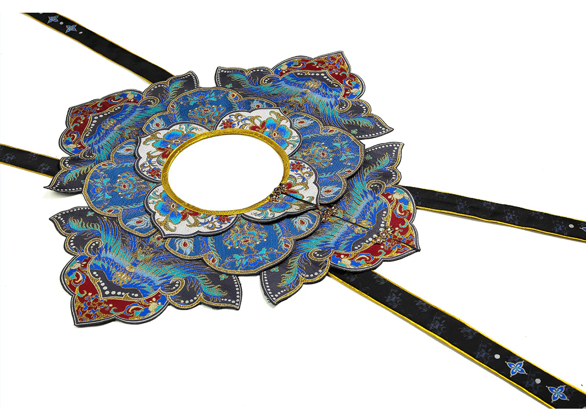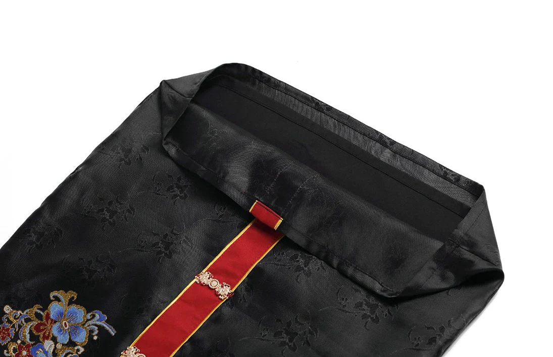 Pattern Design: Entire collection adorned with “Dancing Fairy” themed sequin embroidery (featuring floral and ribbon motifs). Vibrant yet understated colors paired with a navy blue base enhance texture, balancing traditional Chinese aesthetics with modern fashion;