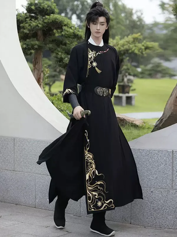 Blending traditional Tang Dynasty Hanfu elements with a swordsman aesthetic, it boasts a sleek and comfortable silhouette that exudes valor, grace, and unshakable confidence. Accented with exquisite gold embroidery, it elevates the single-tone base with a touch of contemporary flair. Whether for photoshoots, professional photography, or stage performances, this Hanfu is sure to make you shine brilliantly in every setting!