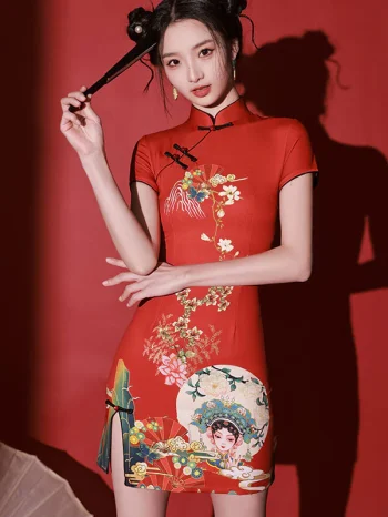 Short Sleeveless Red Cheongsam Dress