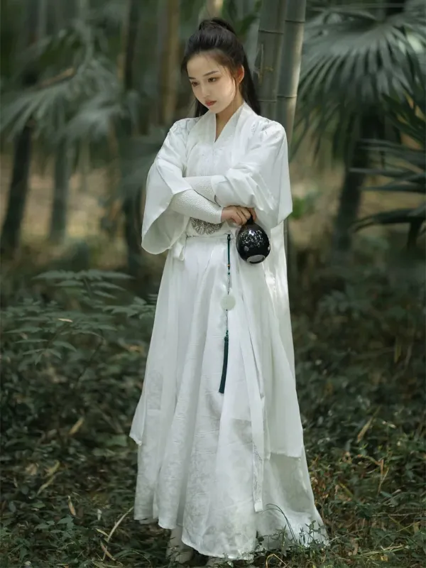 This Northern Song Dynasty-style Hanfu is unisex, featuring handcrafted bamboo embroidery. Made with soft, breathable fabric in classic black and white, it boasts a relaxed, comfortable fit. Sleek and elegant, it’s perfect for couples—ideal for photoshoots, Halloween, oriental-themed parties, and more.
