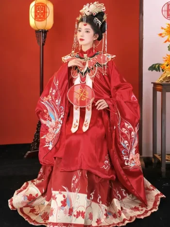 Chinese Ming Dynasty Traditional Red Bridal Hanfu Wedding Dress